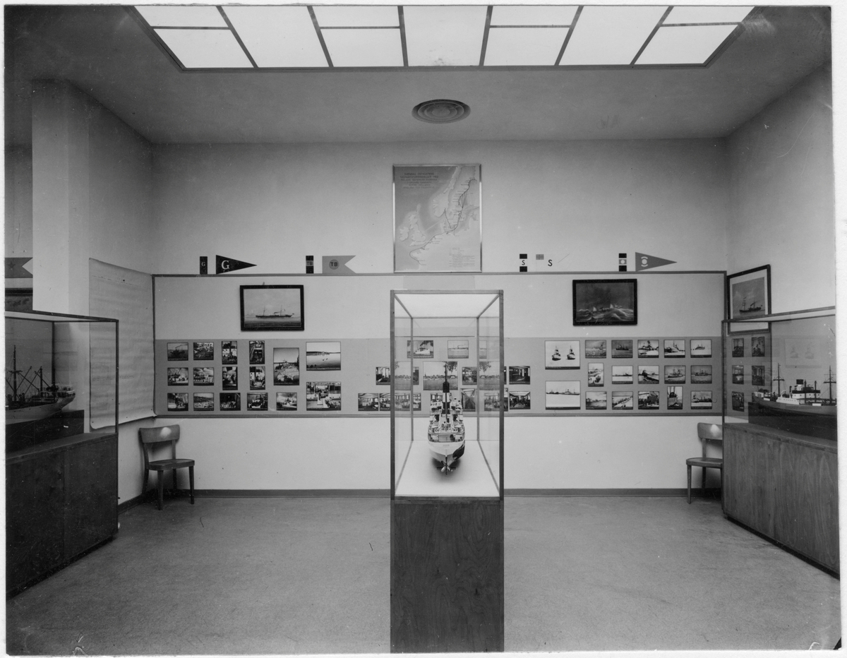 Utställning i Moderna avdelningen i Sjöfartsavdelningen visande linjesjöfart.