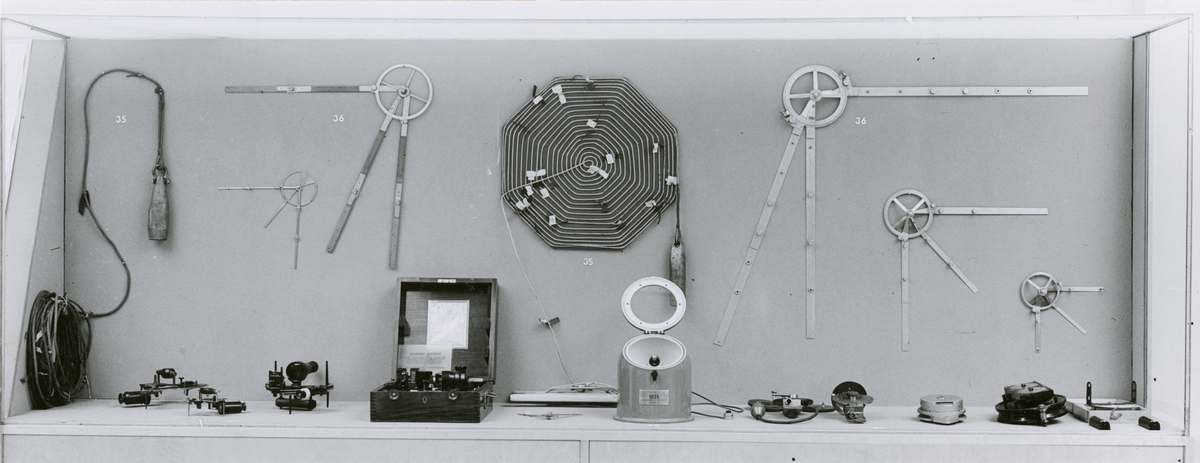 Utställningen "Sveriges sjökarta 16441944". Avdelning 3, sal 5, nr 33-41. Diverse instrument.