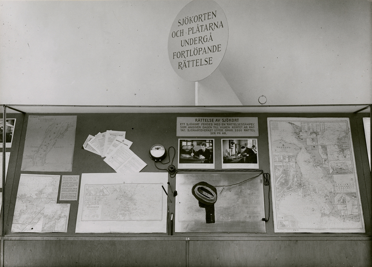 Utställningen "Sveriges sjökarta 16441944". Avdelning 3, sal 5, nr 54. Rättelse av sjökort.