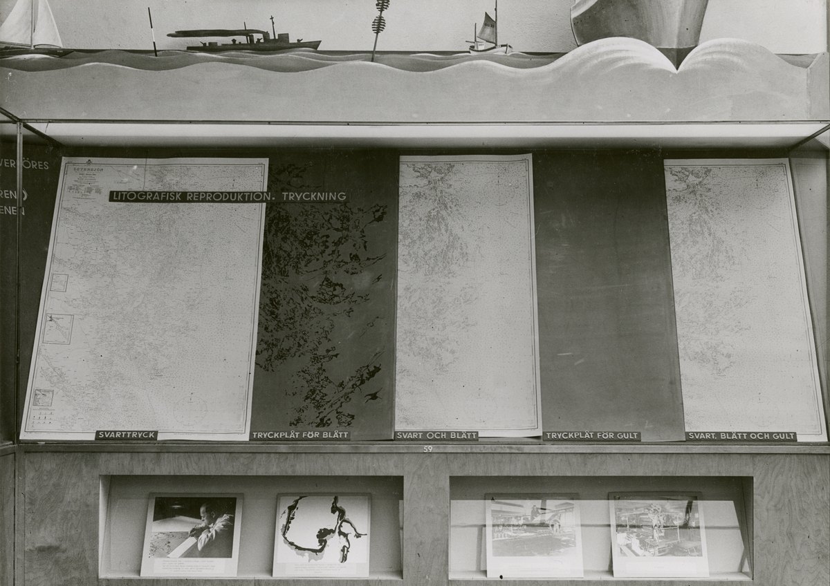 Utställningen "Sveriges sjökarta 16441944." Avdelning 3, sal 5, nr 59. Litografisk reproduktion och tryckning av sjökort.