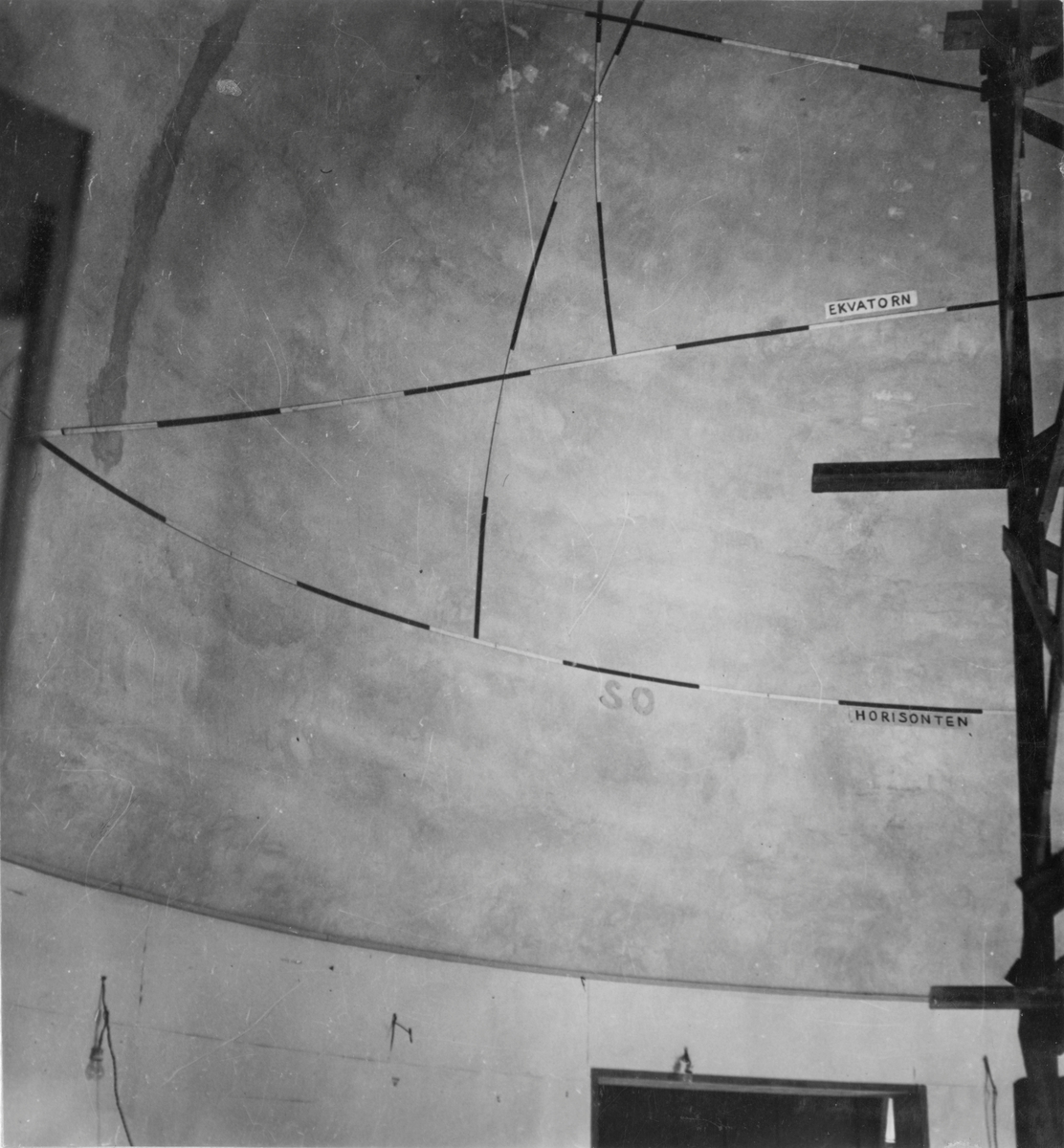 Utställning i Nautiska avdelningen i Sjöfartsavdelningen. Del av stjärnhimlen i kupolen.