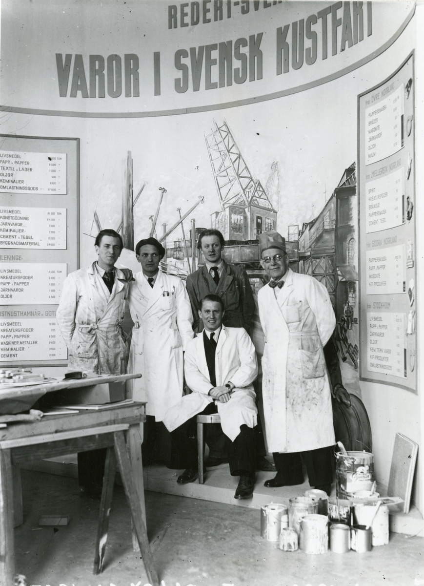 Utställningen "Stockholms Rederi AB Svea". Personal som arbetar med uppmonteringen.