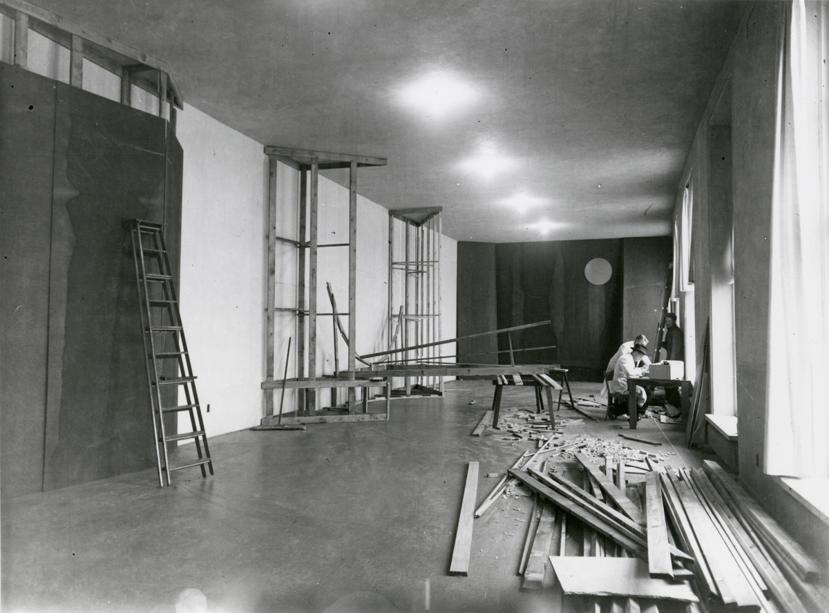 Titel: Utställningen "Stockholms Rederi AB Svea". Arbete med uppmonteringen.