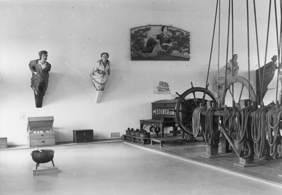 Utställning i Mastrummet i Sjöfartsavdelningen. Detalj av däcket från fyrmastade barken BEATRICE.
