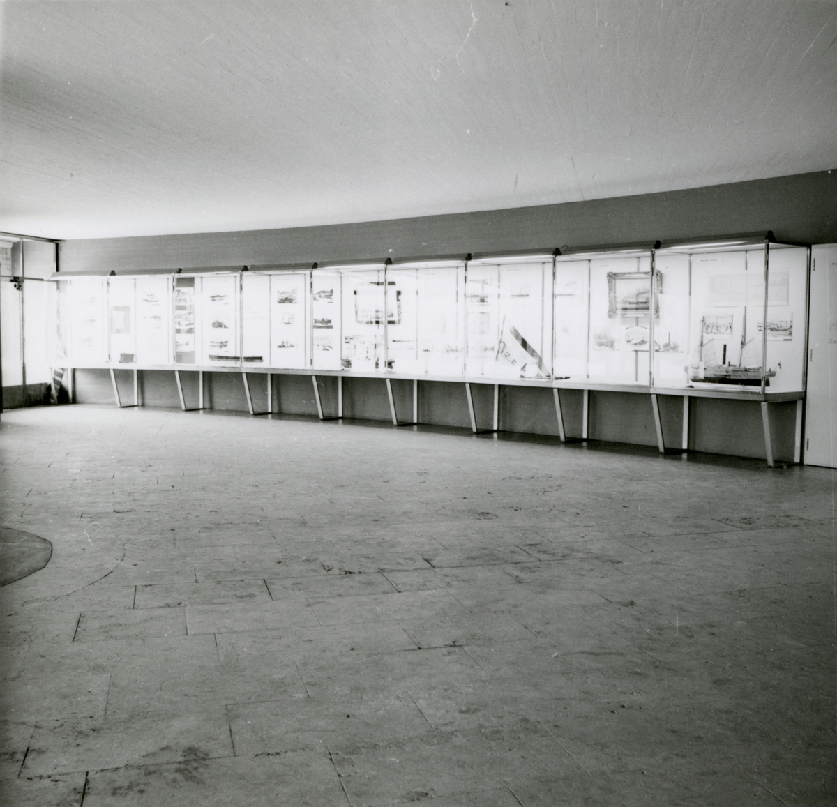 Utställningen "När ångbåten kom". Vägg med monter i utställningen.