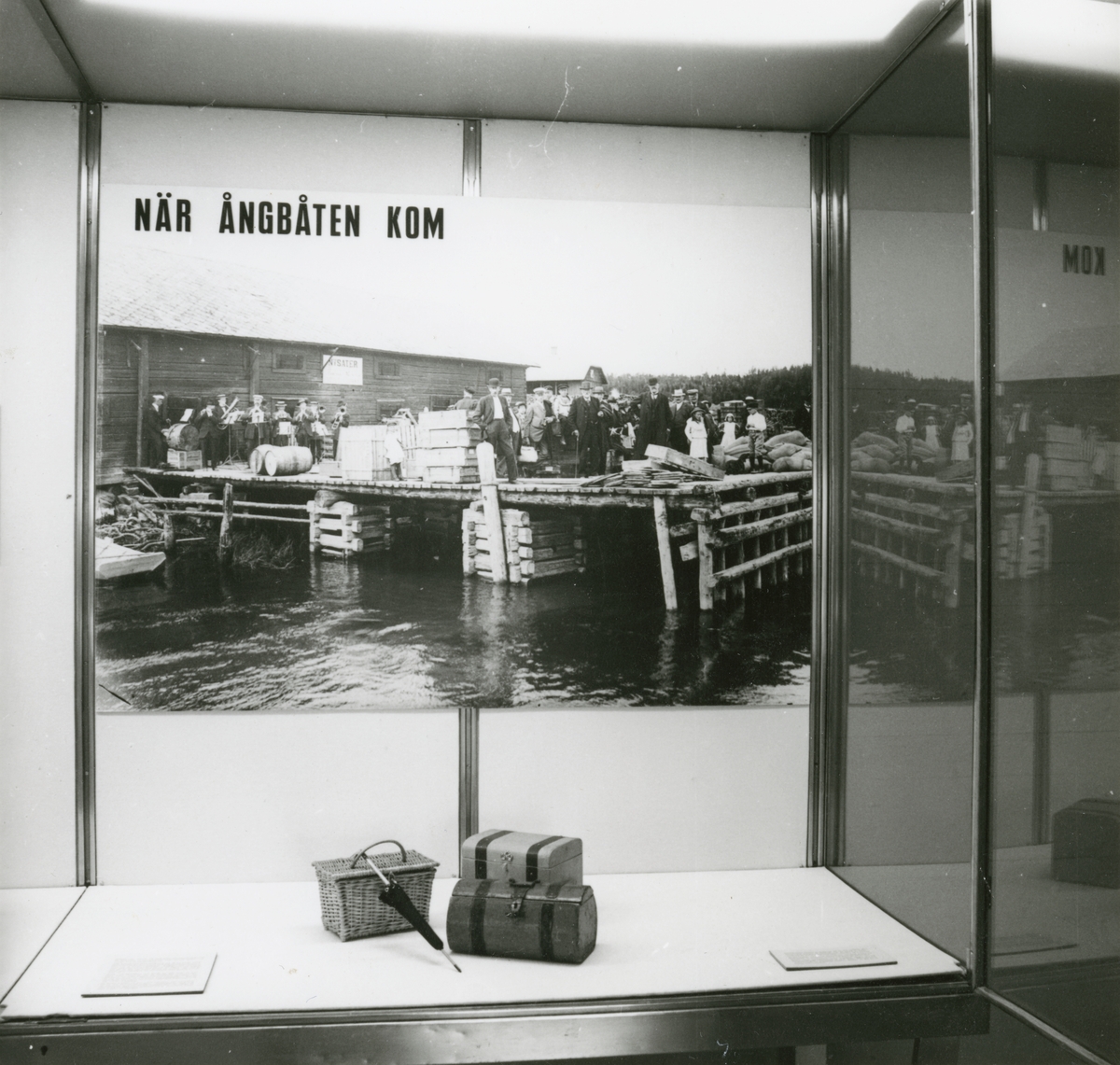 Utställningen "När ångbåten kom". Inledningsmonter i utställningen.