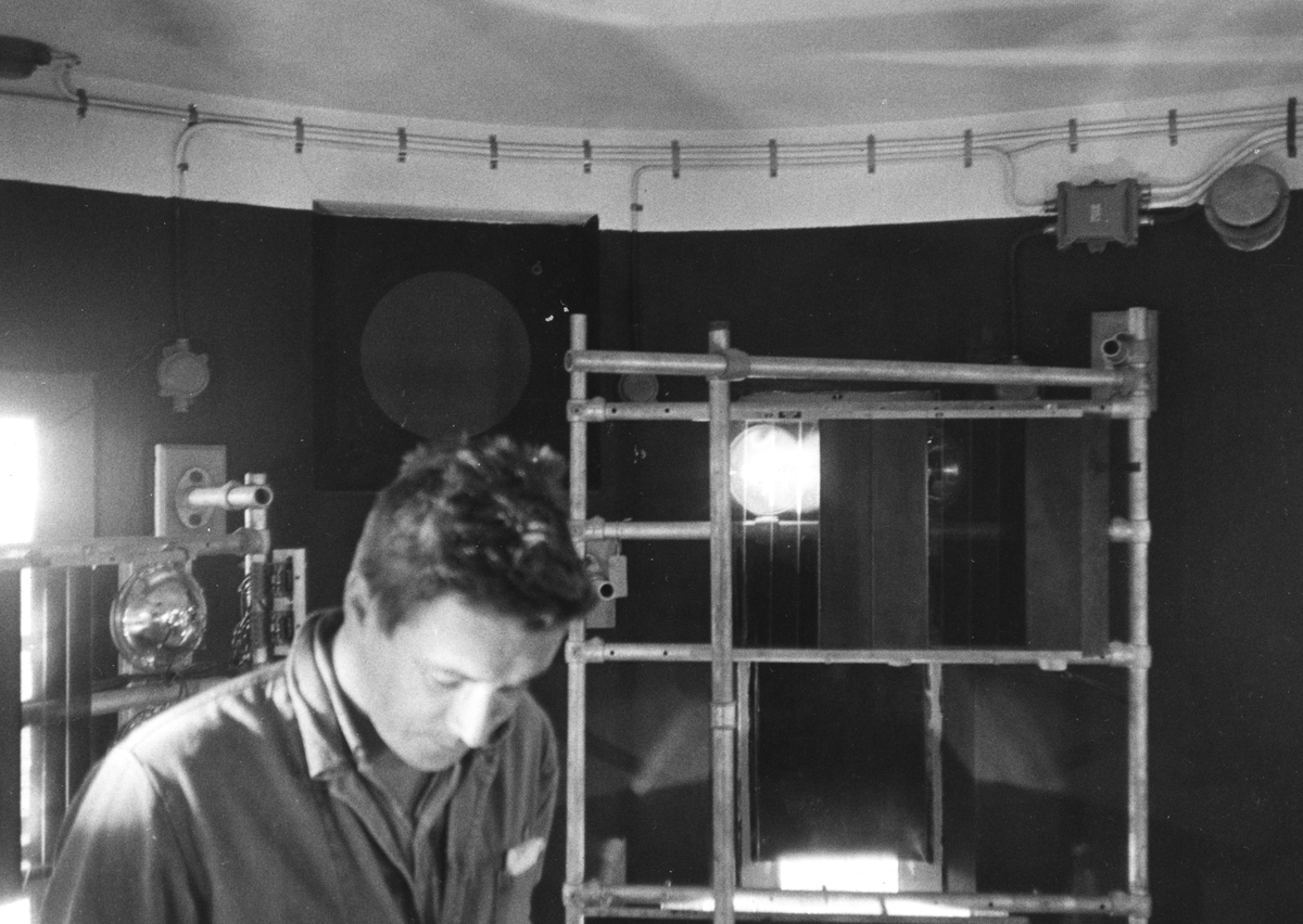 Biträdande fyrmästare Yngve Johansson vid Holmögadds fyrplats inne i kassunfyren Nordvalen, vilken är obemannad men manövreras från Holmögadd och sköts av personalen där.