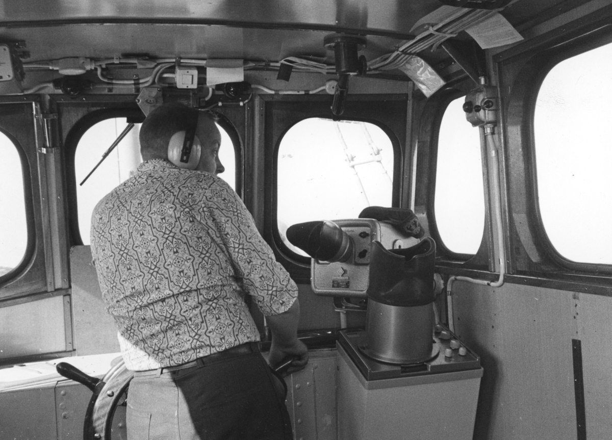 Fyrmästare Erland Larsson i båt tillhörande Holmögadds fyrplats.