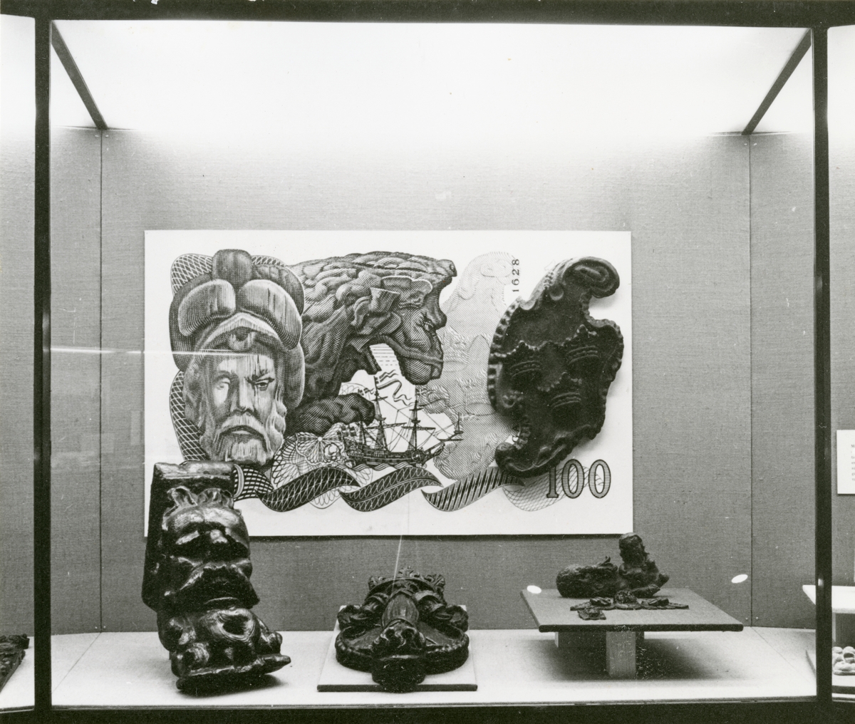 Utställningen "Repliker av repliker". Monterinteriör med ornament.