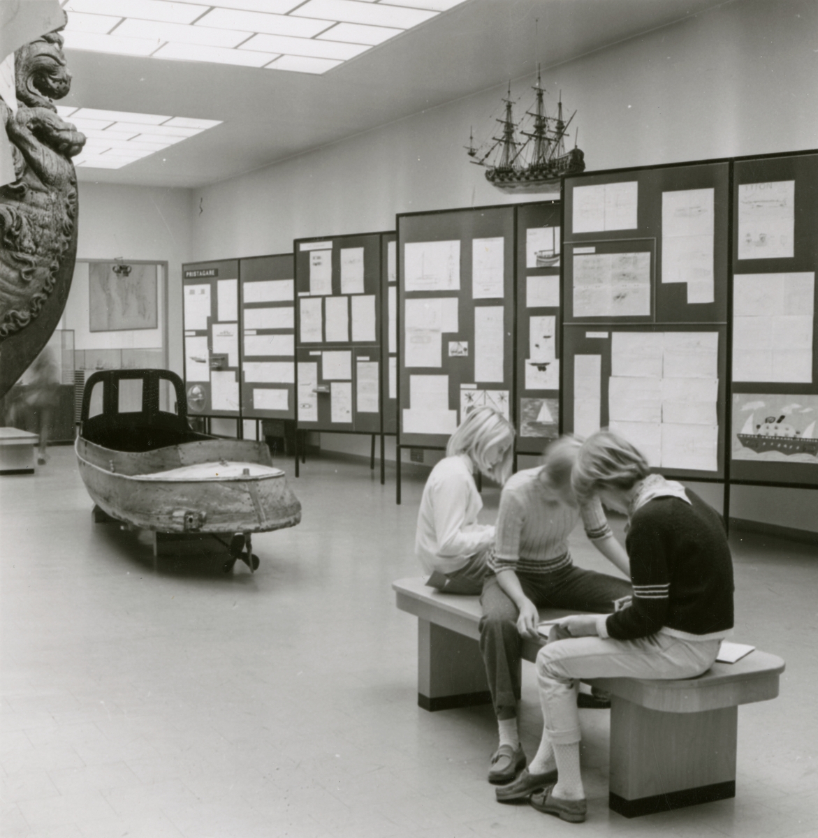 Utställningen "Framtidens nöjesbåt". Tre ungdomar i utställningen.