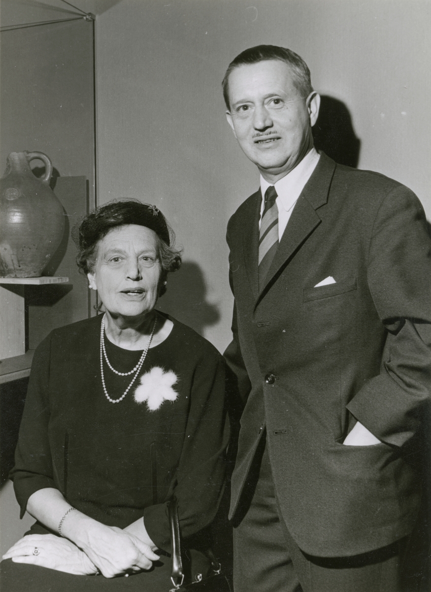 Utställningen "Djurhamn Historisk ankargrund". Fru Inga Lindskog och intendent Gösta Webe vid vernissagtillfället.
