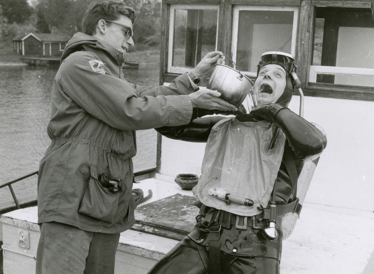 Förberedelser inför dykning vid marinarkeologiska utgrävningar vid Djurhamn.