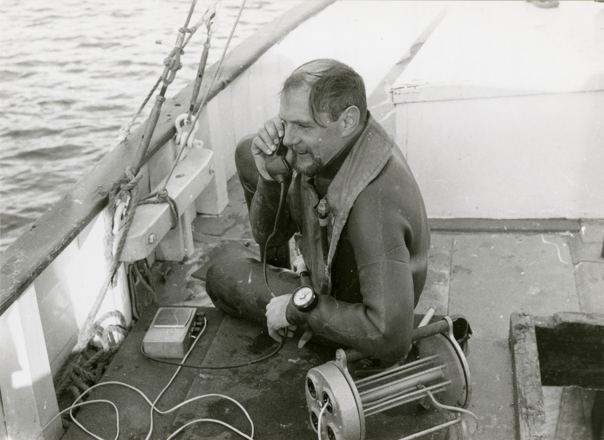 Kommunikation mellan dykare i fält vid marinarkeologiska undersökningar vid Djurhamn.