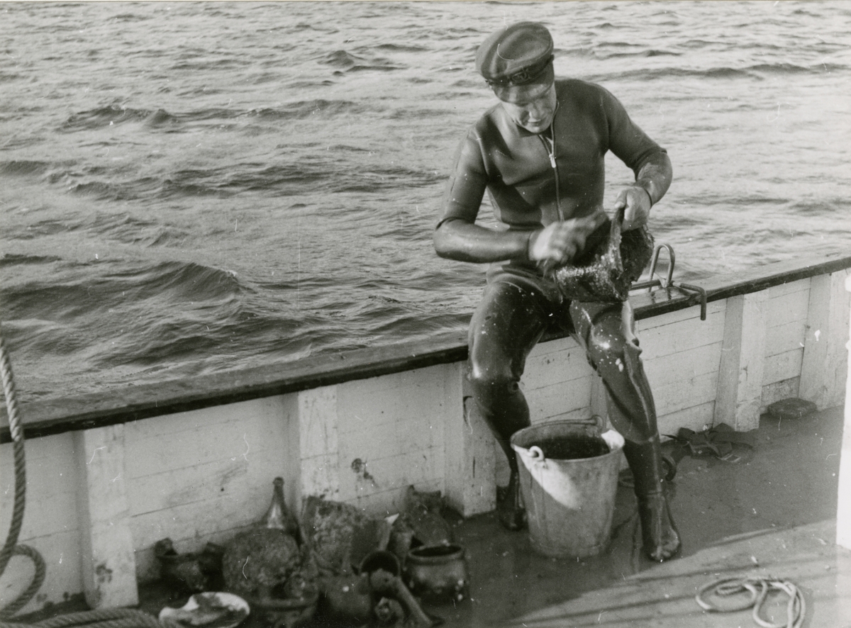Rengöring av lösfynd vid marinarkeologiska undersökningar vid Djurhamn.