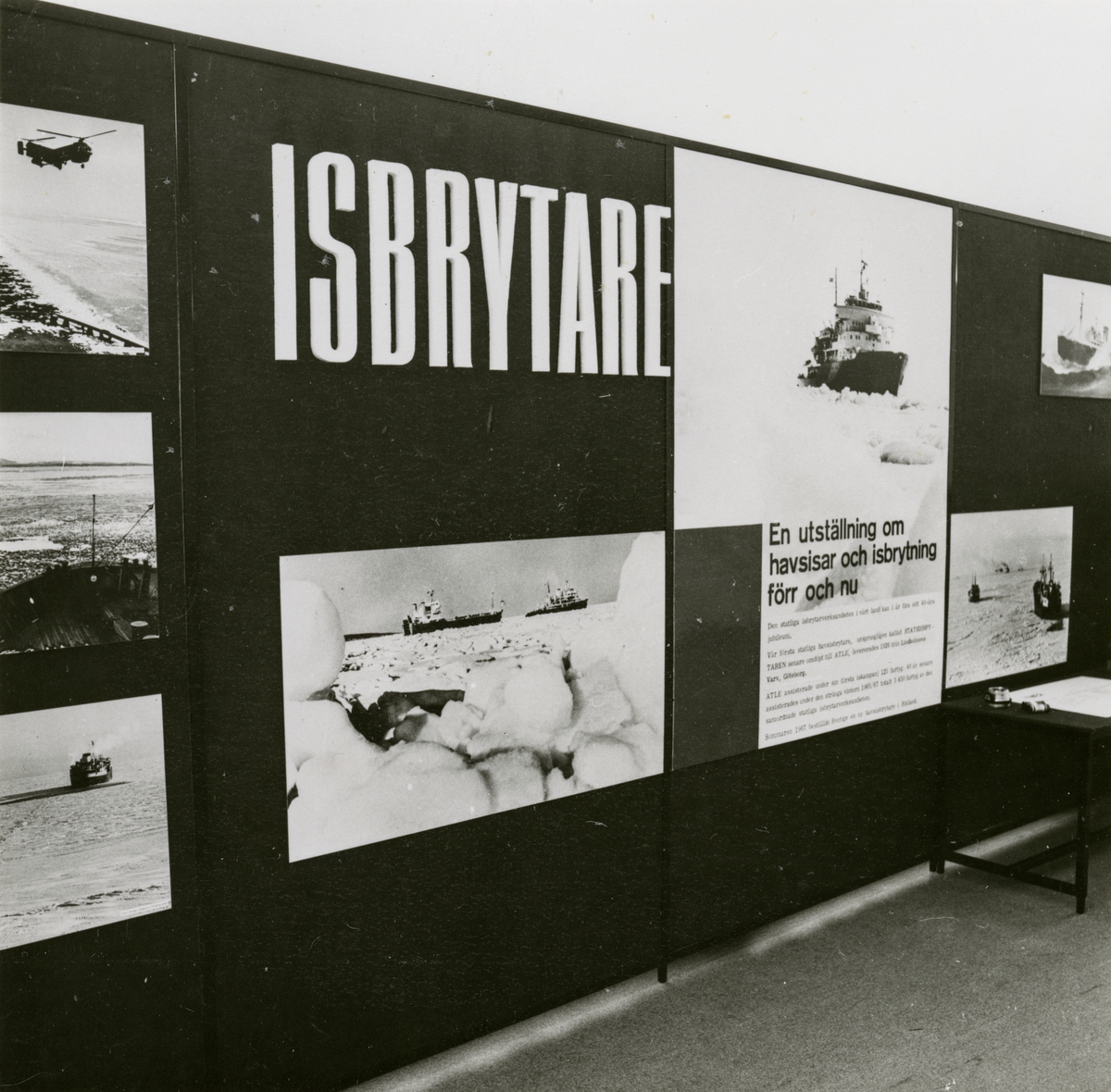 Utställningen "Isbrytare". Introduktionsskärmen "Isbrytare. En utställning om havsisar och isbrytning förr och nu".