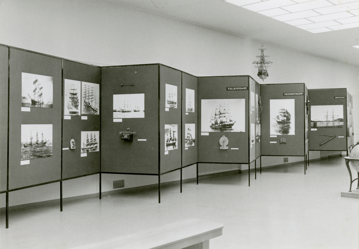 Titel: Utställningen "Seglande Skepp". Skärmutställning visande olika typer av segelfartyg m.m.