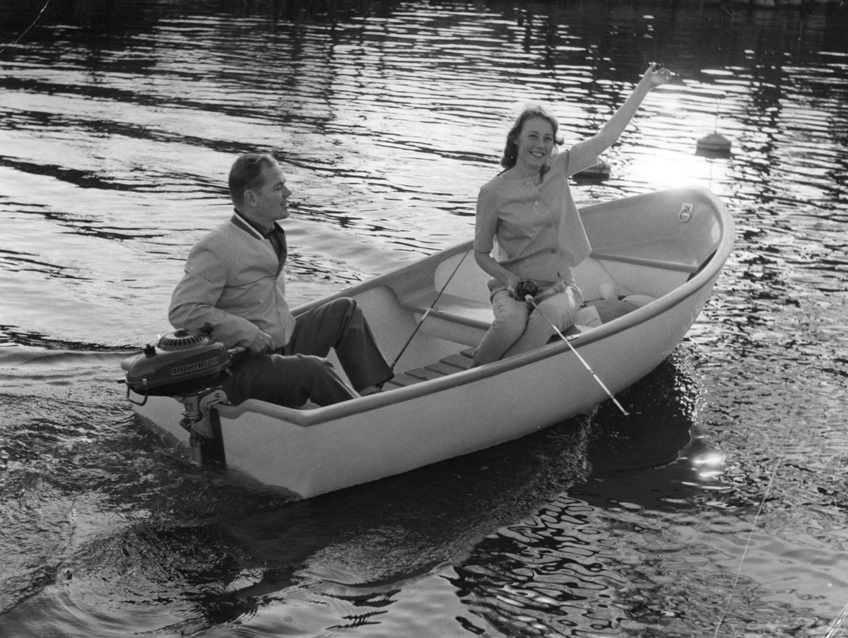 Ett par i en plastjolle av modellen Lux Atlantic. Reklambild.