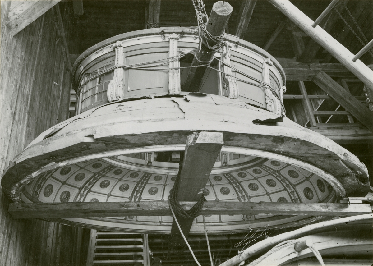 Utställning av AMPHIONs inredning. Den bevarade taklanterninen till kajutan efter fartygets upphuggning på Stockholms örlogsvarav 1884-85.