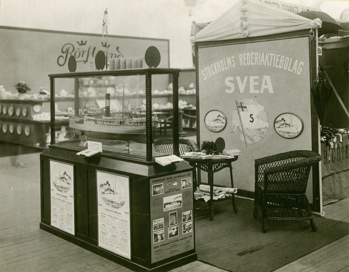 Utställning på Svenska mässan 1927. Rederiaktiebolaget Sveas monter på 10:de svenska mässan.