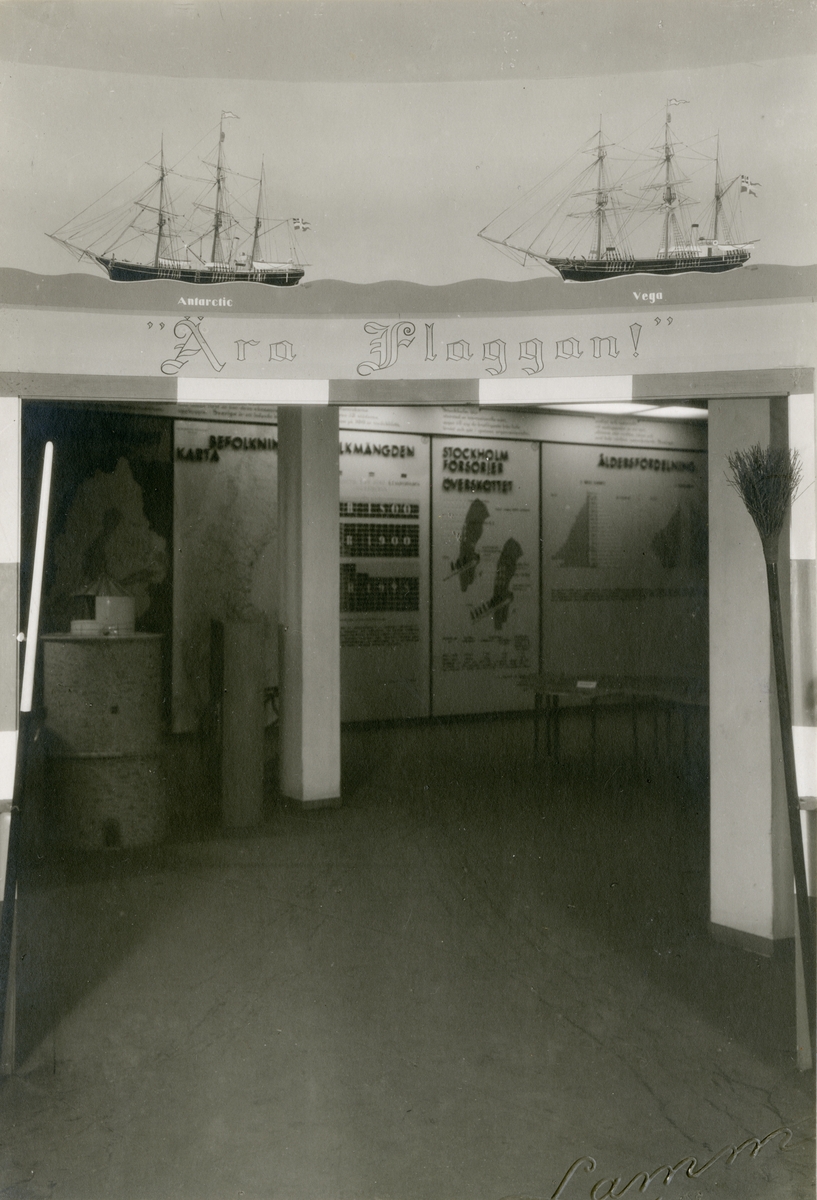 Utställningen "Svea Rike" på Stockholmsutställningen 1930. Presentation av S.S.S. (Kungliga Svenska Segelsällskapet). Fartygsmodeller, pokaler m.m. i samband med Kungliga Svenska Segelsällskapets 100 år jubileum.