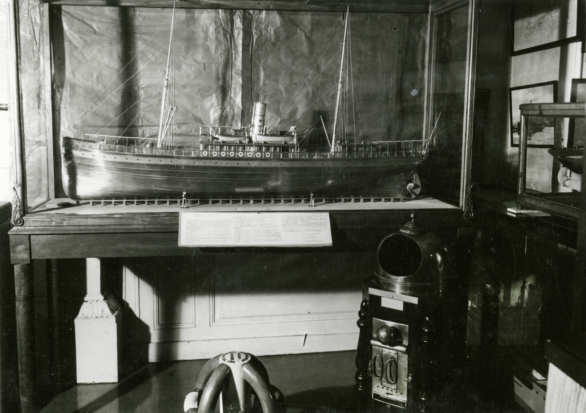 Utställning i Gamla Sjöfartsmuseum, Skeppsbron 46 i Stockholm. Modellen av kustångaren AEOLUS i förgrunden.