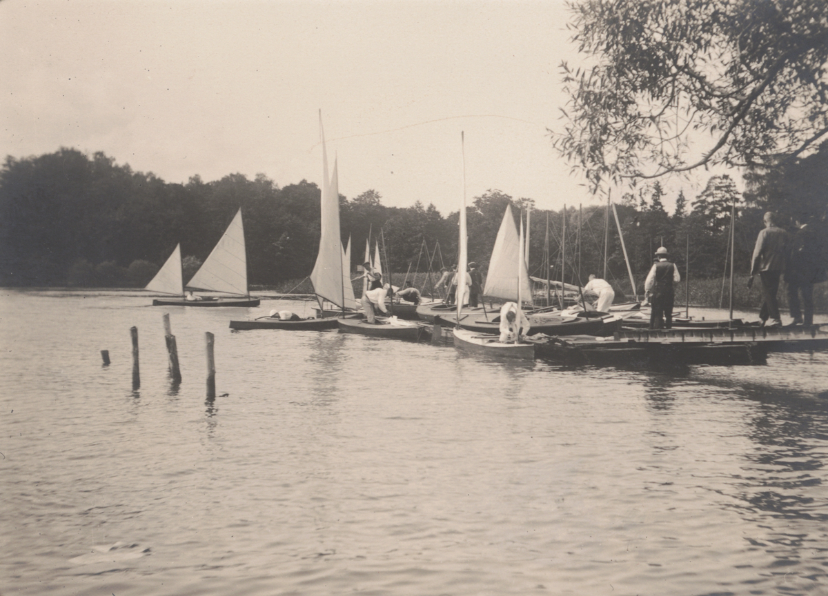 Segelkanoter vid brygga. FKI:s klubbhamn vid Måsholmen i Lilla Värtan.