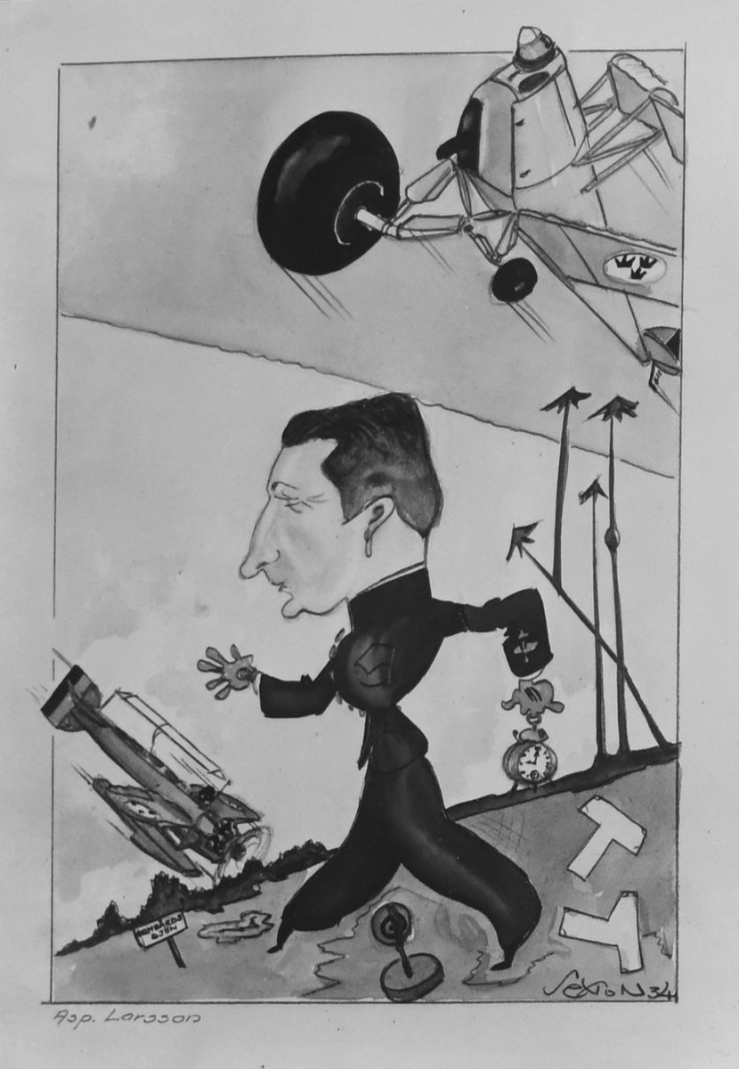 Karikatyrbild av militären, aspirant Larsson, ur flygvapnet, 1934,