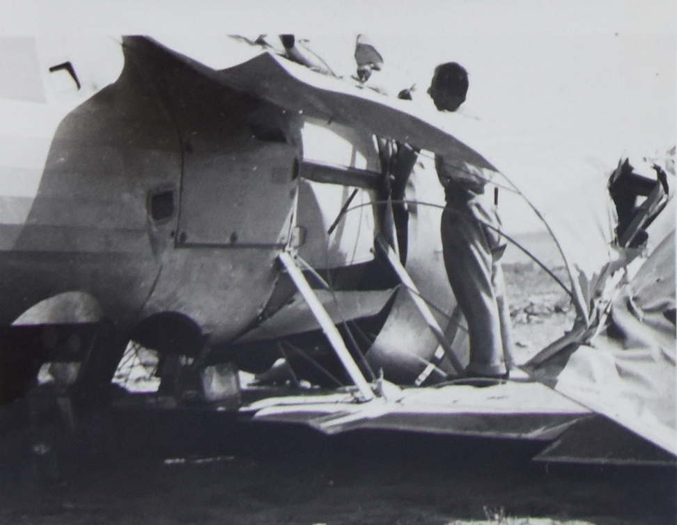 Ett flygplan Hawker Hart har landat på rygg på ett flygfält, omkring 1935-1937. Närbild.