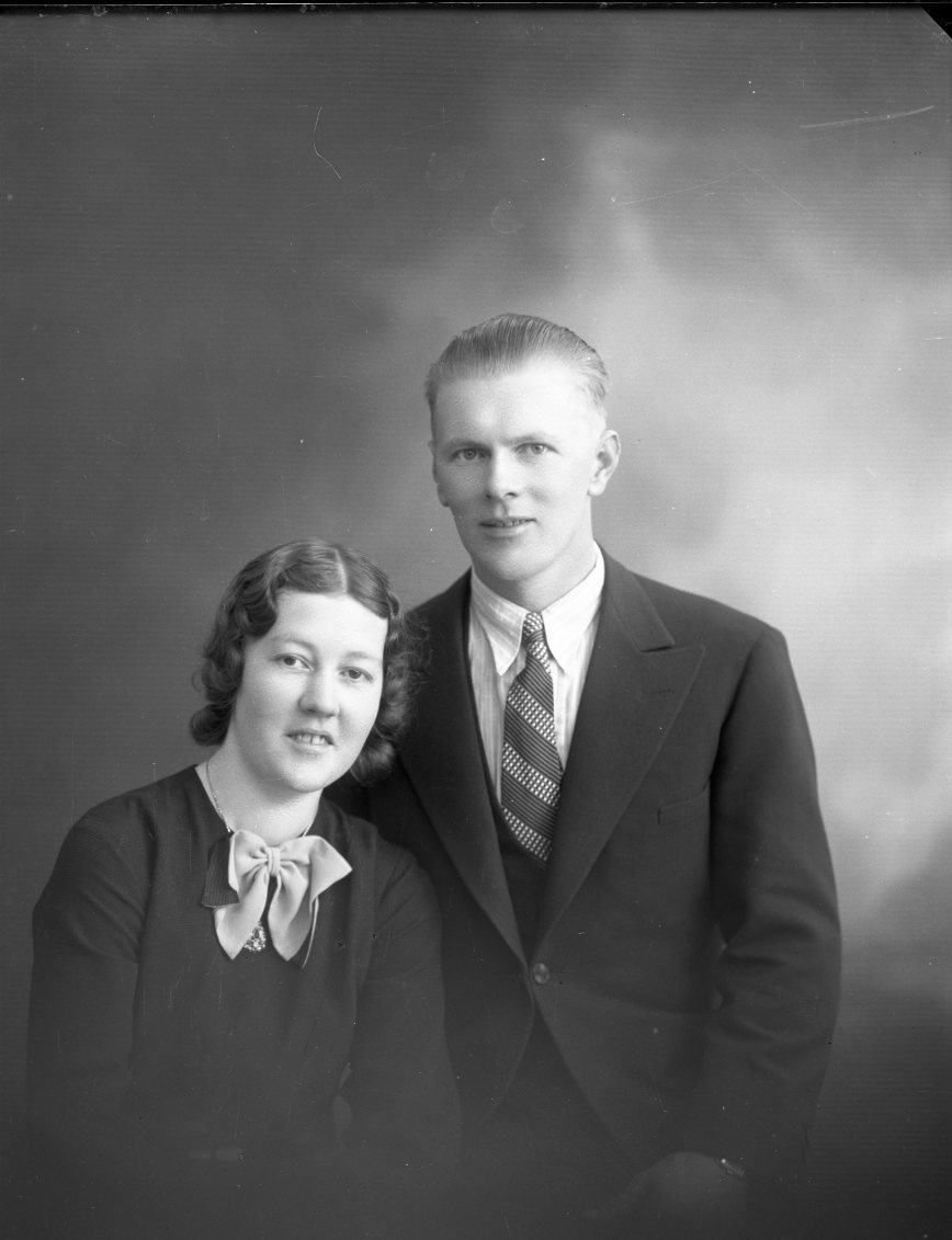 Titel: Gruppbild med ung kvinna och man.