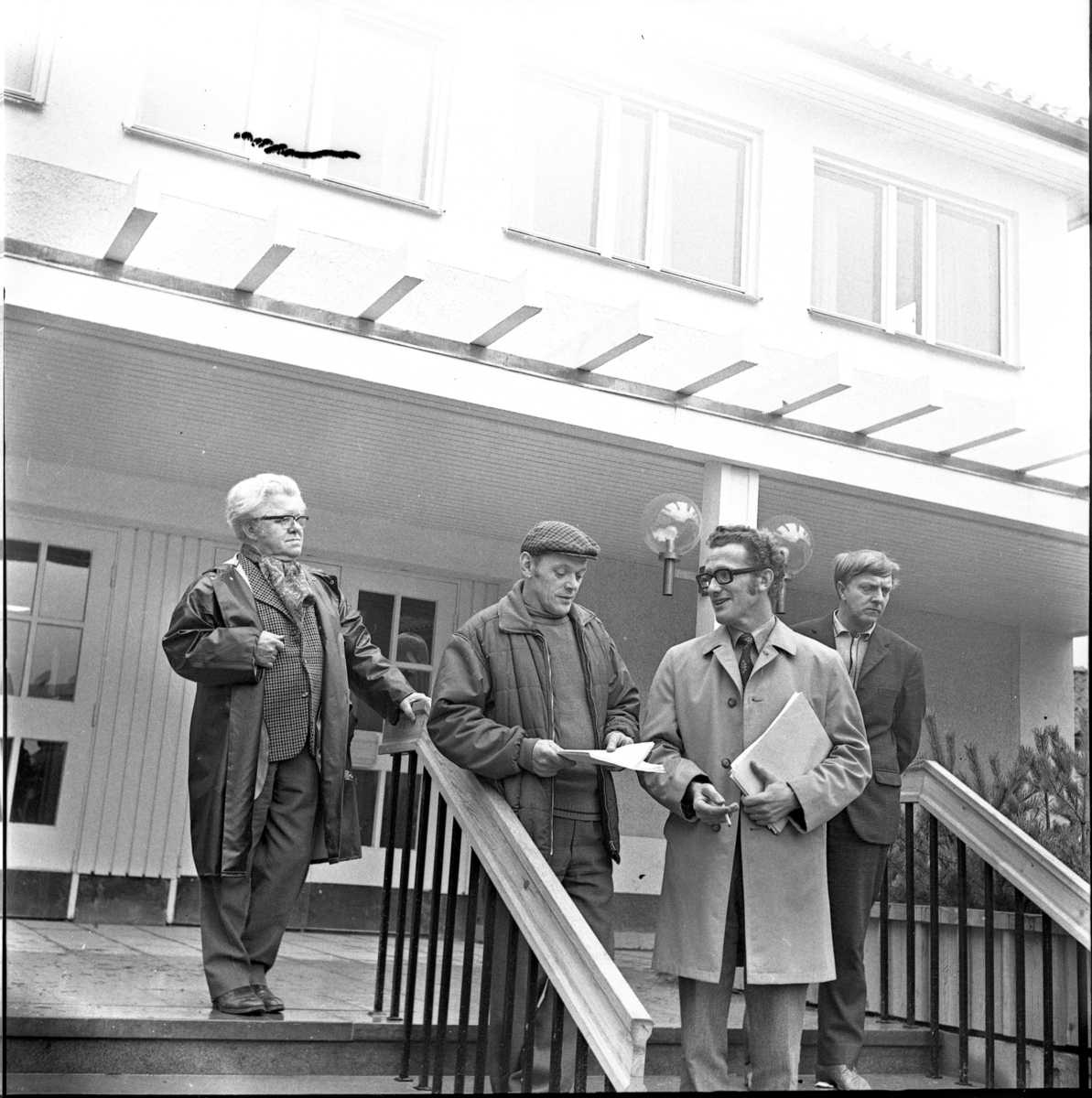 Fyra män står på trappan till Medborgården i Gränna som ska invigas om ett par dagar.