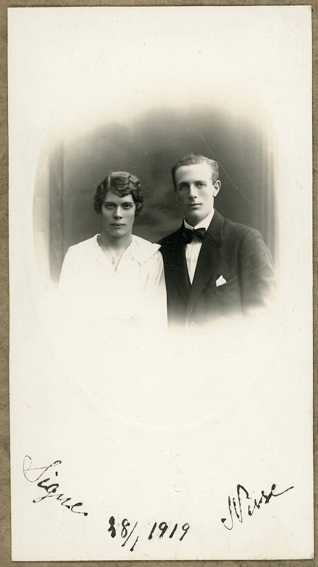 Porträtt av en kvinna och en man - troligen förlovnings/bröllopsfoto.
