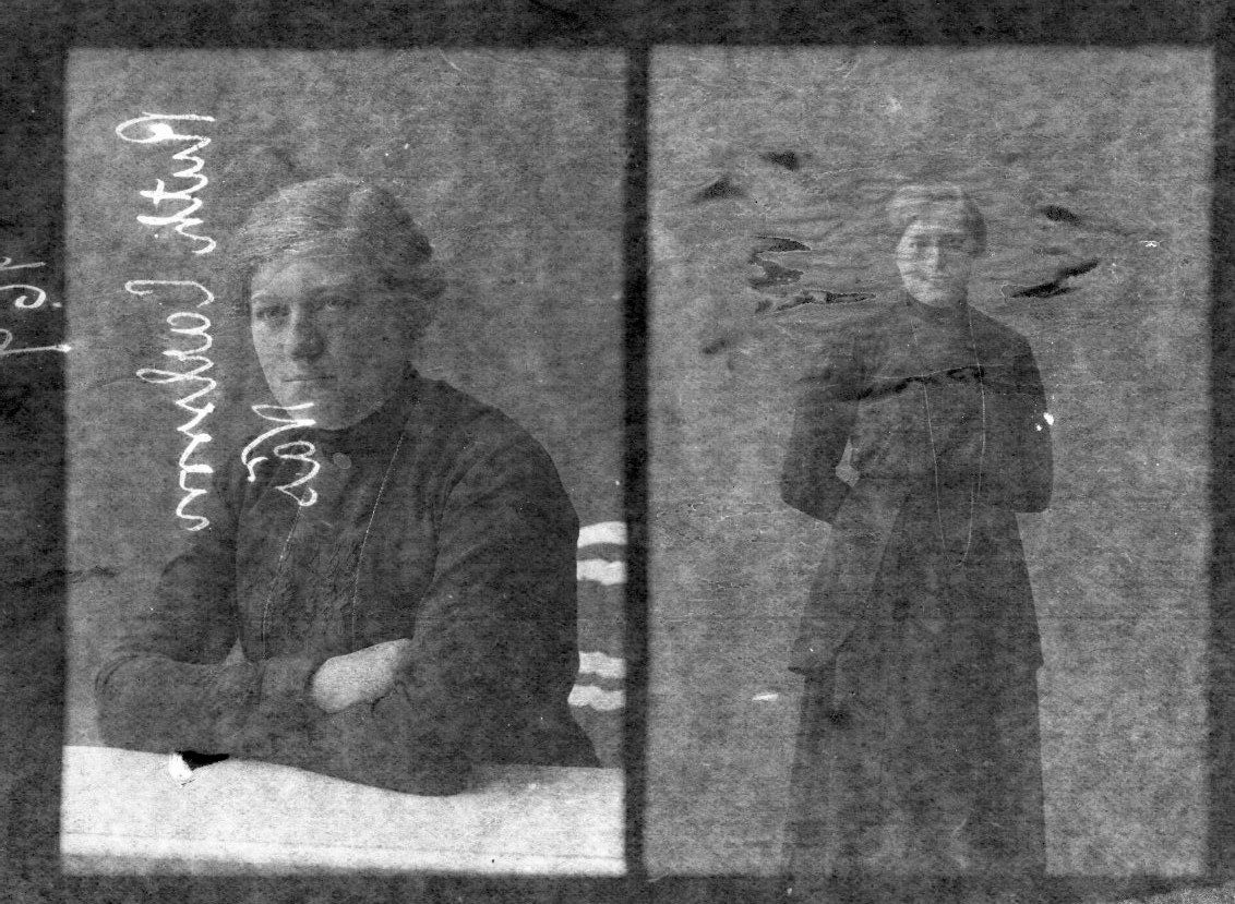 Två porträtt av en kvinna på samma glasplåt.