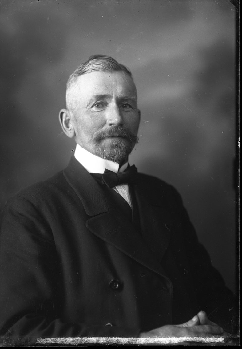 Porträtt av en man med mustasch och skägg, och ett litet leende på läpparna.