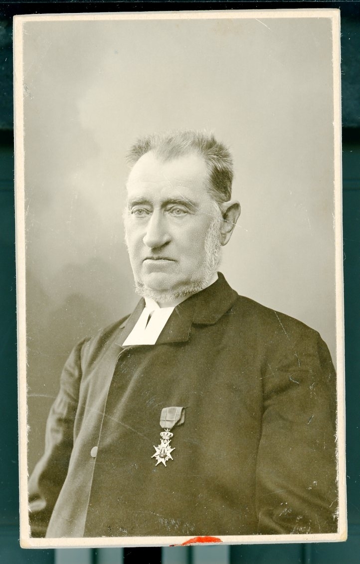 Kabinettsfotografi: Prosten Carl Gustaf Mozart, med Vasaordens ordenskors på bröstet.