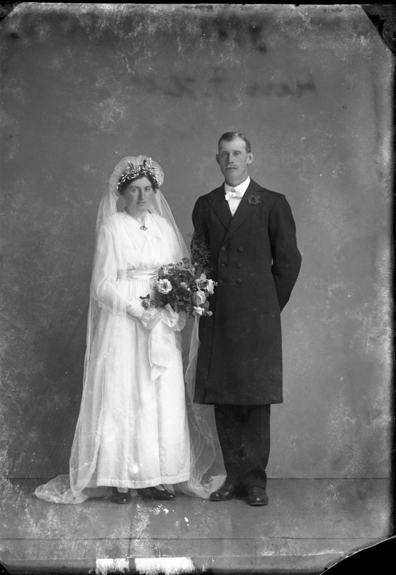 Titel: Ett brudpar. Kvinnan i vitt.