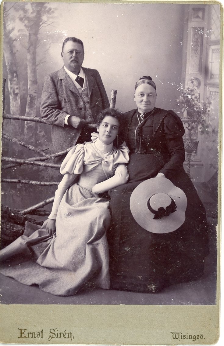 Kabinettsfotografi av en man, kvinna och en yngre kvinna.