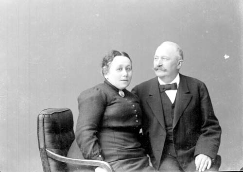 Grupporträtt med sittande äldre man och kvinna.