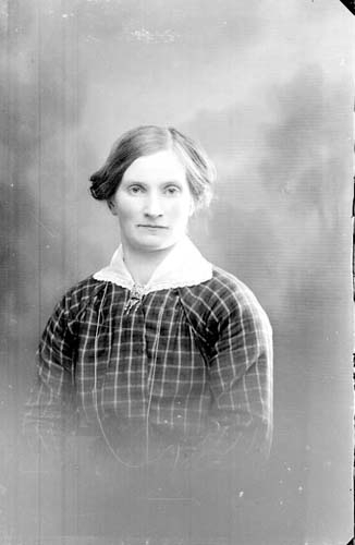 Bröstbild av en kvinna i rutig överdel med vit krage.