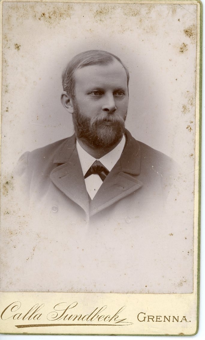 Kabinettsfotografi av en okänd man med skägg och mustasch.