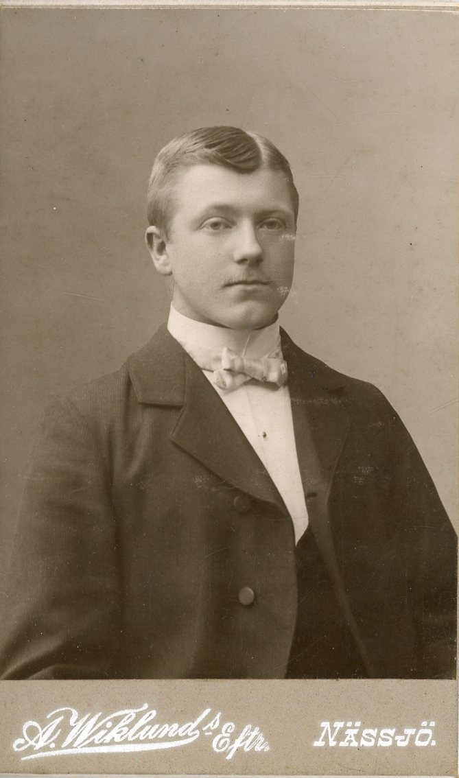 Kabinettsfotografi av en högtidsklädd ung man.