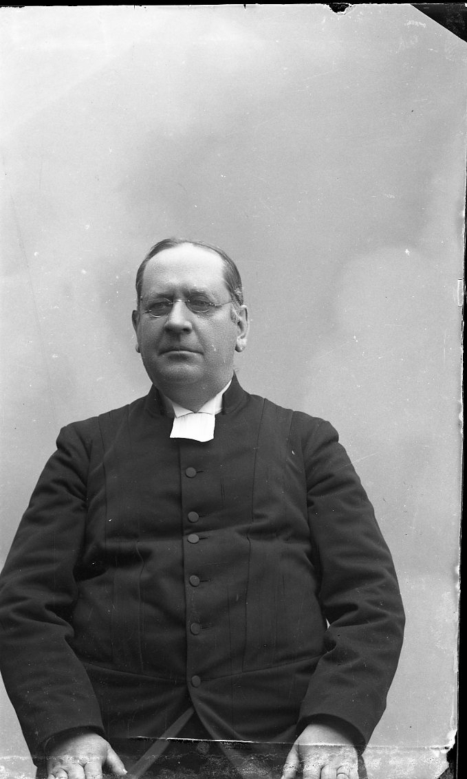 Porträtt av kyrkoherde Holmberg i Gränna, i ämbetsdräkt.