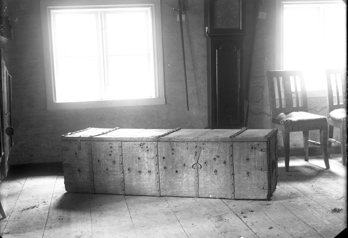 En äldre kista sannolikt stående på golvet i kaptensbostället i friluftsmuseeet på Grännaberget.