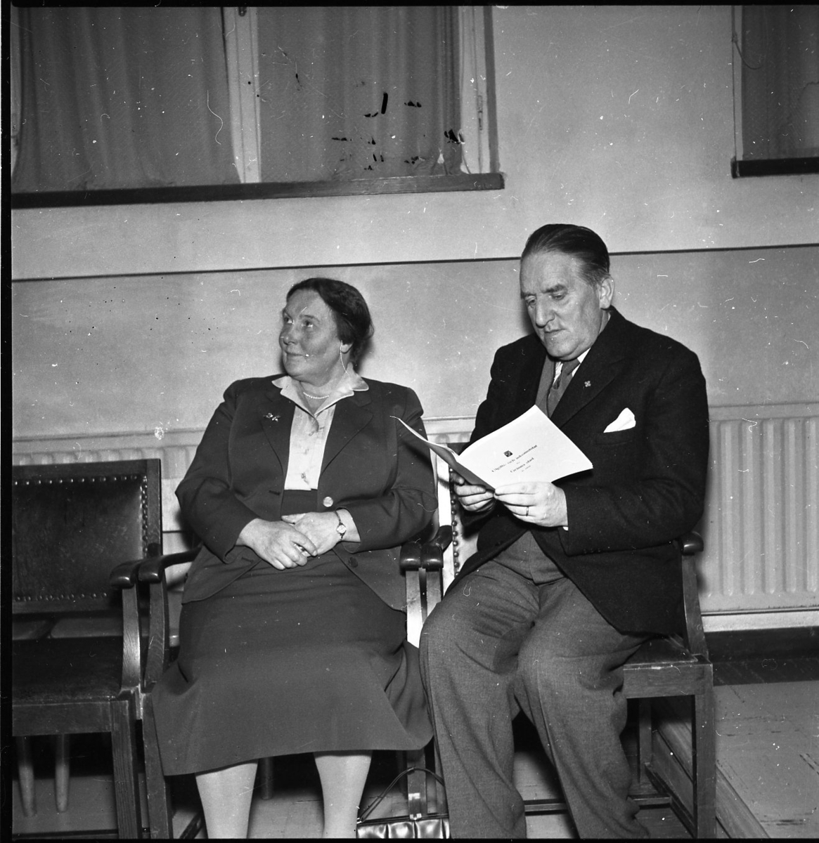En man och en kvinna sitter bredvid varandra på varsin stol. Mannen läser en bok. Kvinnan tittar på någonting utanför bilden.