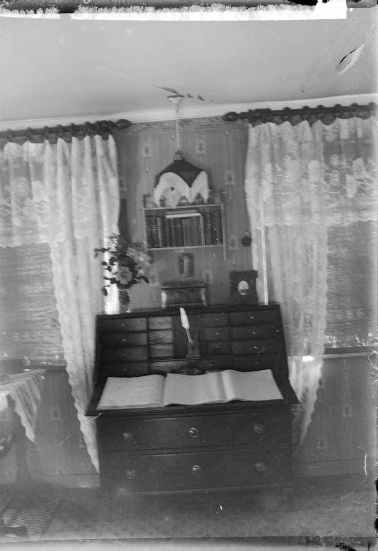 En hemmiljö. Något suddig bild av en sekretär med nedfälld lucka.