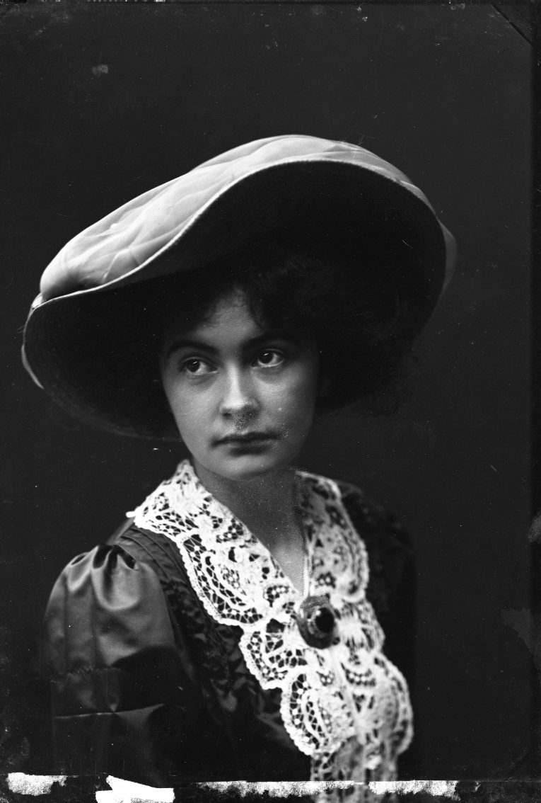 Porträtt av en ung kvinna med hatt - bröstbild.