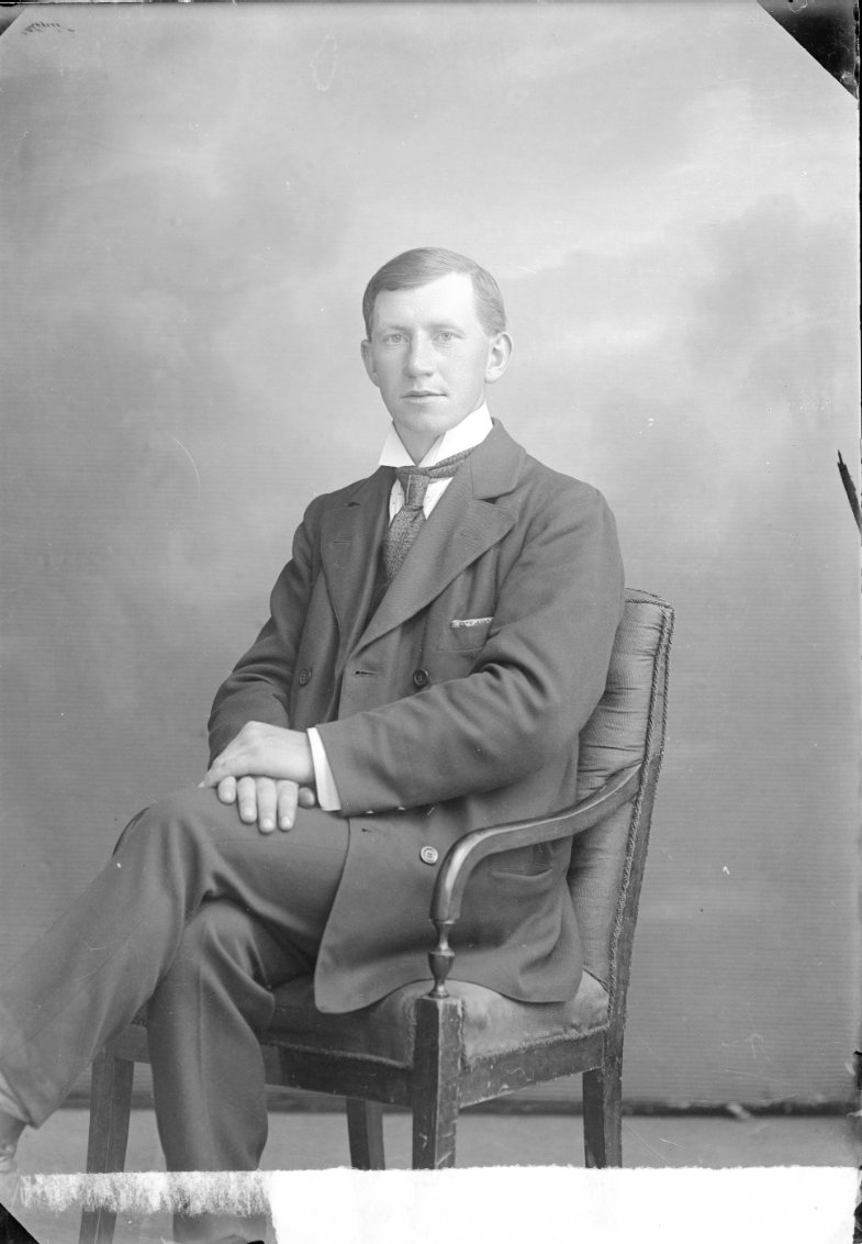 Porträtt av en man som sitter på en stol.