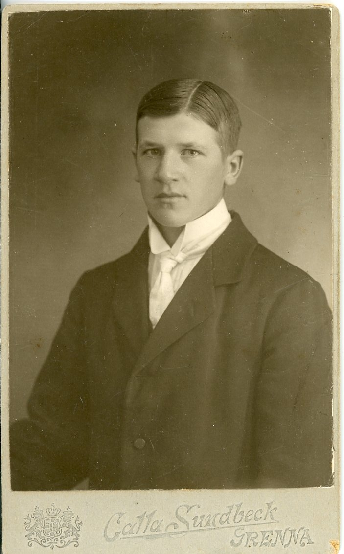 Porträtt av en okänd ung man med vit slips.