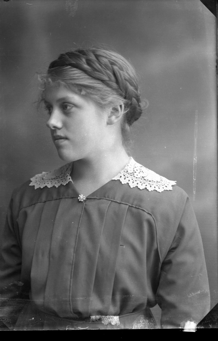 Porträtt av en flicka med uppsatt fläta.
