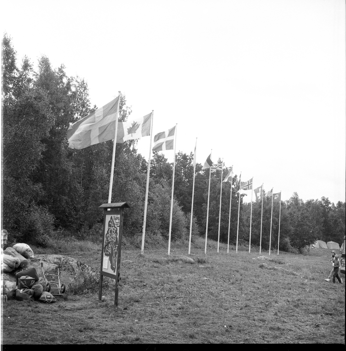 Ett fält med tolv flaggstänger och internationella flaggor.