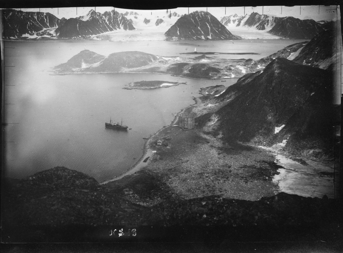 Vy över s k Virgo hamna med Virgo, Pikes hus och färdigt ballonghus.